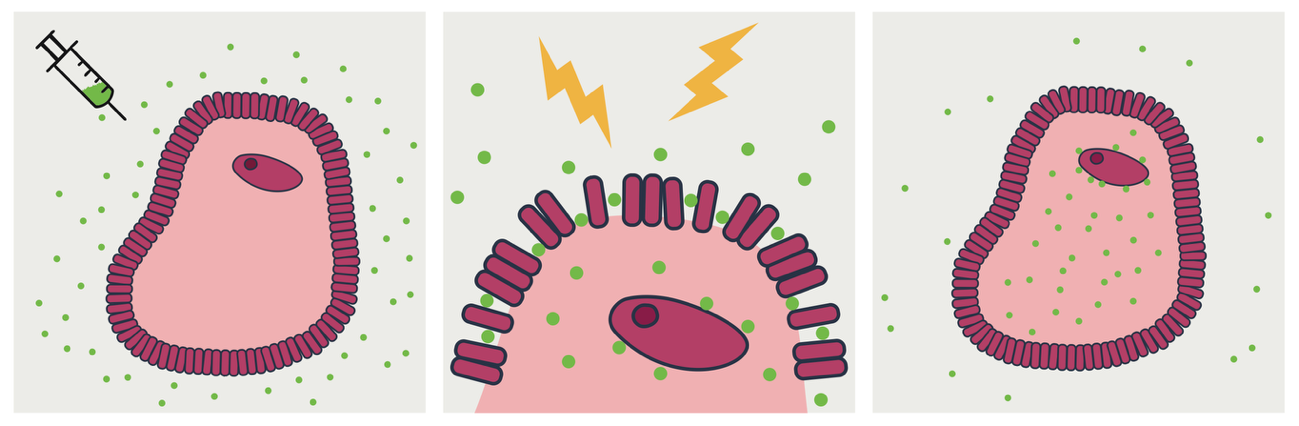 電気パルスによってがん細胞の膜が一時的に変化し、抗がん剤が腫瘍細胞の中へ入りやすくなる ことで、薬の効果を引き出します。